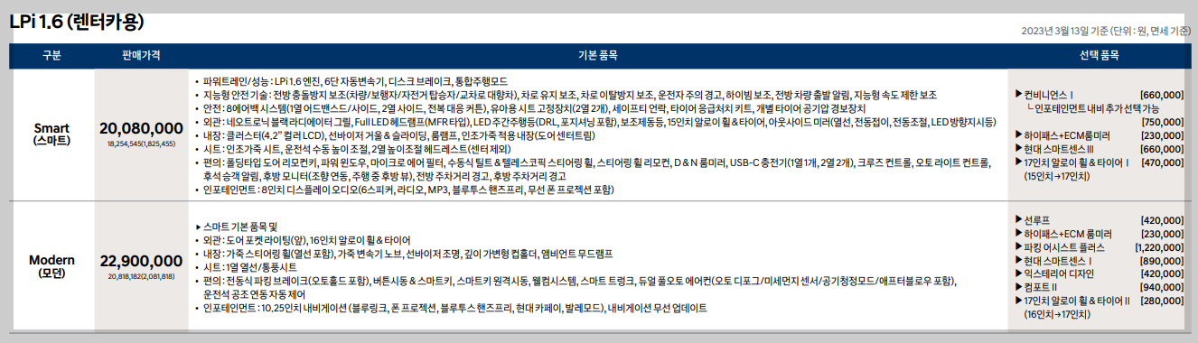 스마트(Smart) : 26,260,000원 + 옵션추가요금