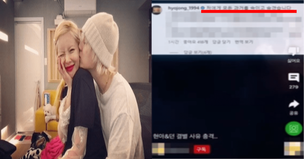 앞서 유튜브 채널에는 ‘레온밍 현아 헤어진 이유’라는 제목으로 던이 쓴 사칭 글이 올라왔다.
